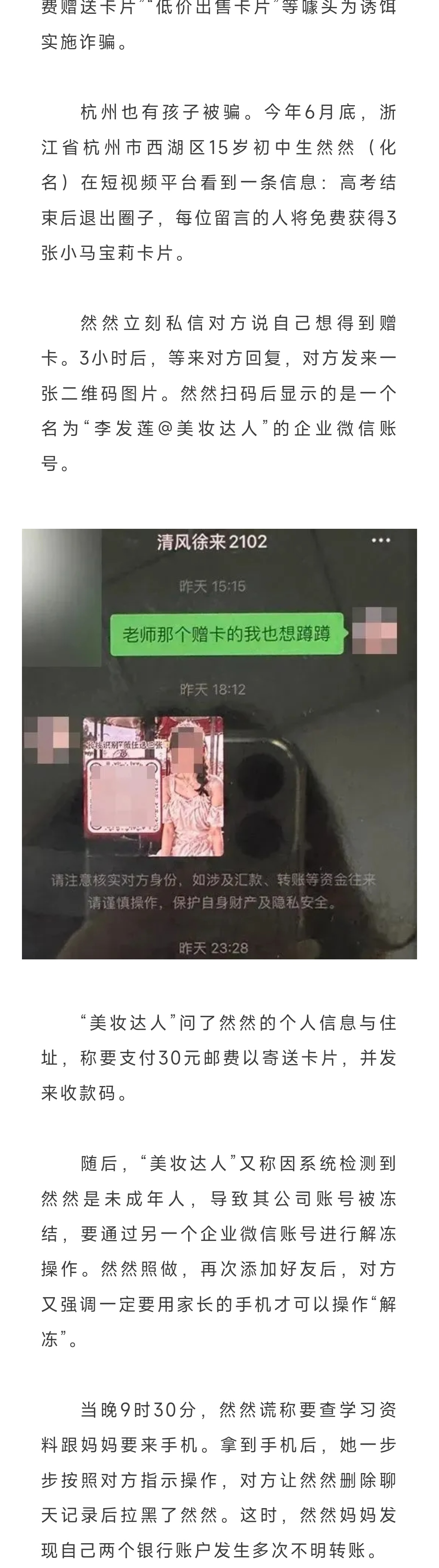 【消保反诈】孩子“集卡”遭诈骗!妈妈账户2小时竟被转账50次,损失14.3万
